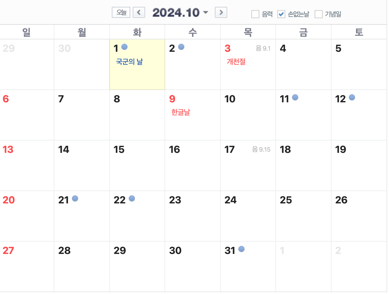 손 없는 날은 음력으로 끝수가 9와 0일인 날, 즉 9일과 10일, 19일과 20일, 29일과 30일이 해당됩니다.